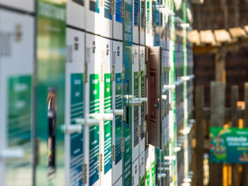 W EnergyLandii rozmieszczone dziesiątki dużych szafek depozytowych, do których możemy (a przy niektórych atrakcjach musimy) odłożyć większe przedmioty…